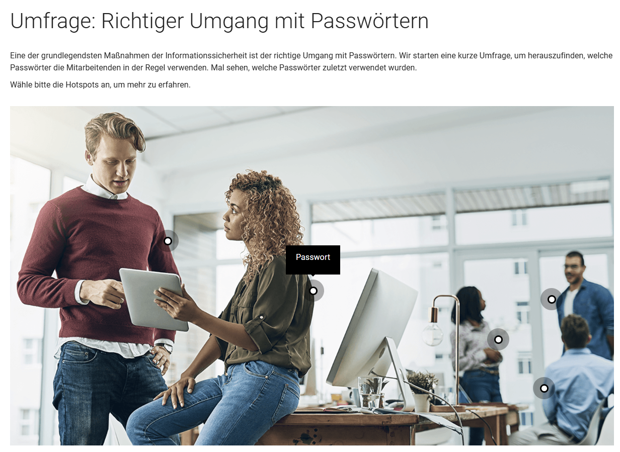 Das barrierefreie WBT „Informationssicherheit“ führt die Teilnehmenden auf eine Mission, um praxisnah Bedrohungen und Schutzmaßnahmen kennenzulernen. Es behandelt zentrale Themen wie E-Mail-Sicherheit, Schutzklassen, den sicheren Umgang mit sozialen Netzwerken sowie Risiken durch Social Engineering. Zudem werden die korrekte Entsorgung sensibler Daten und das richtige Verhalten bei IT-Sicherheitsvorfällen vermittelt, um ein ganzheitliches Sicherheitsbewusstsein zu schaffen.